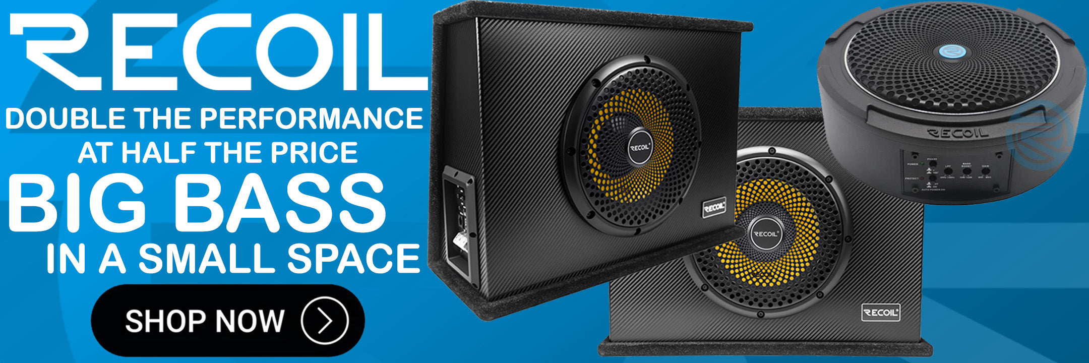 Recoil SL1708 400 Watts 8" 20cm Car Under Seat Amplified Subwoofer & Wiring Kit