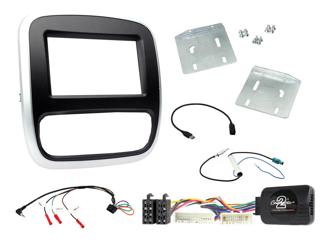 Connects2 CTKVX37 - Vauxhall Vivaro 2014 - 2018 Silver Double Din Fascia Panel & Steering Wheel Interface with Kenwood 6.8" USB DAB Android Mirroring Touchscreen Upgrade Kit