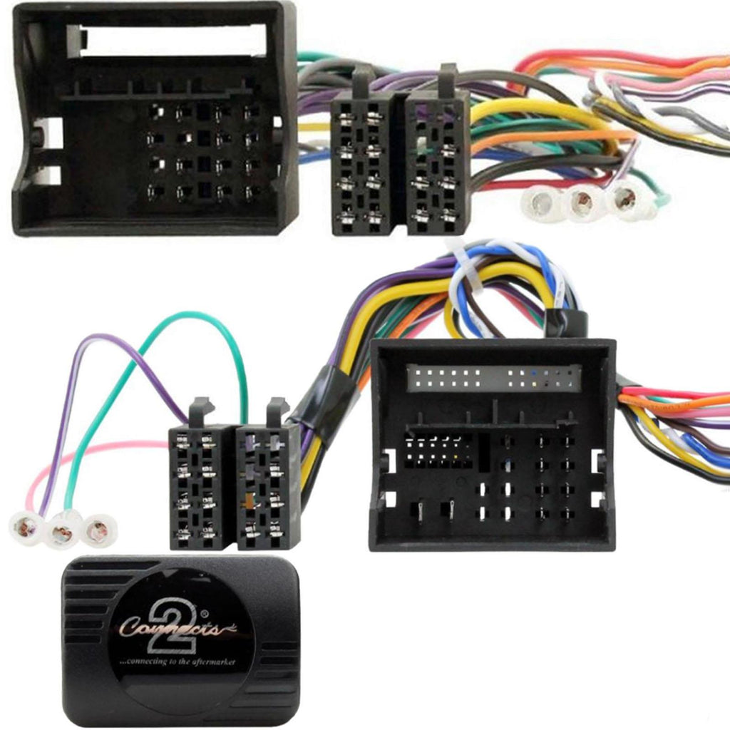 This interface connects a compatible aftermarket stereo with a joystick input (blue line-in mini-jack) or wire input on the back of the unit to the existing steering wheel audio controls and, if equipped, the mobile phone buttons in your Volkswagen when replacing the factory radio.