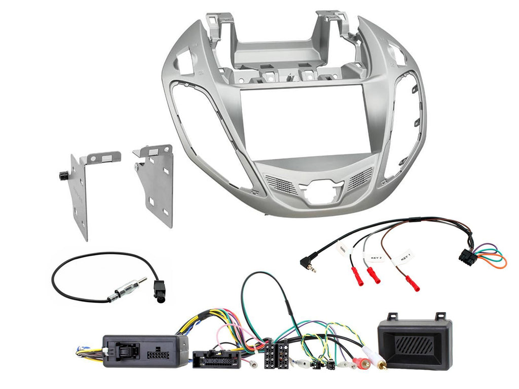 Complete installation kit including silver double DIN fascia panel, interface, antenna adapter and head unit patch lead [Note: requires OEM Ford Hazard/Door Lock Switch - Part No. 1519127]
