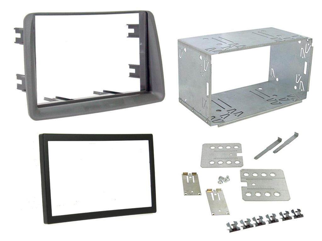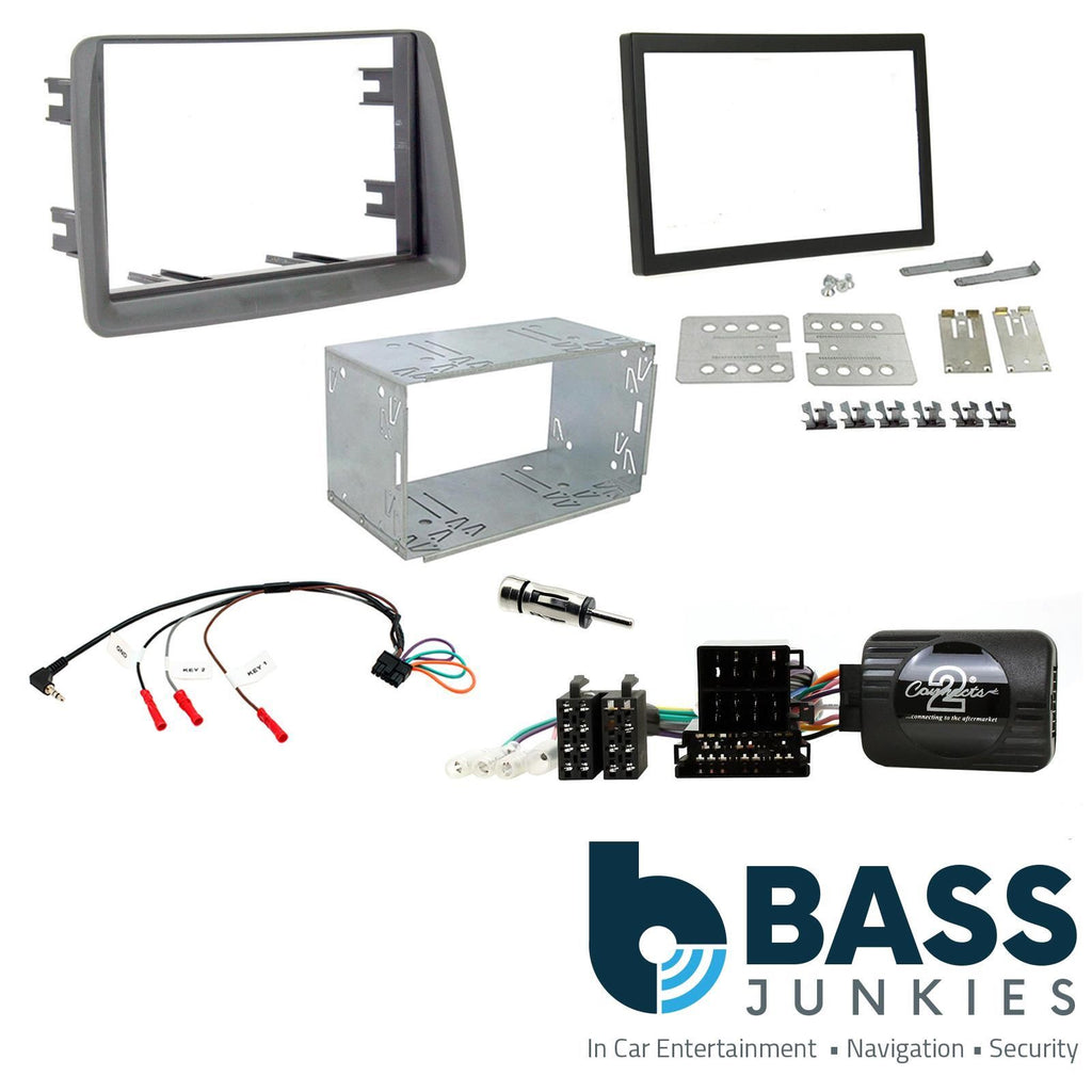 Complete installation kit including dark grey double DIN fascia panel, interface, antenna adapter and head unit patch lead