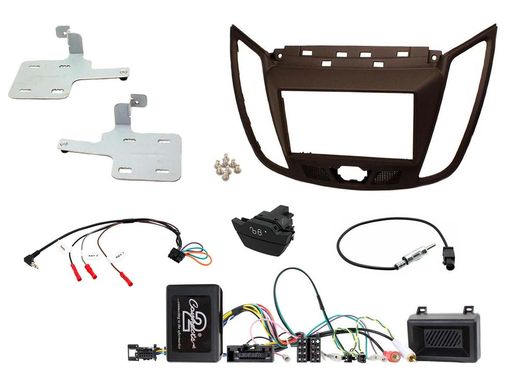 Ford C-Max Installation Kit. Supplied With Dark Brown Double DIN Fascia, CAN-Bus Steering Wheel Control Interface, FAKRA Antenna Adapter, Hazard/Door Lock Switch & Universal Patchlead