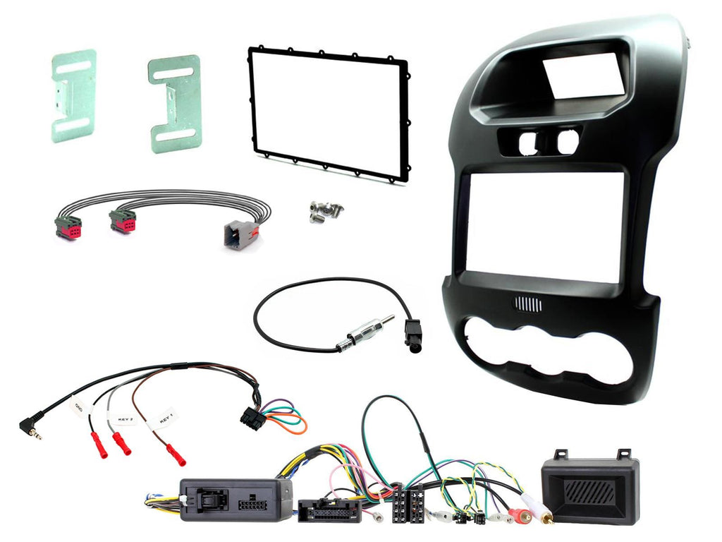 Ford Ranger Installation Kit. Supplied With Black Double DIN Fascia, CAN-Bus Steering Wheel Control Interface, FAKRA Antenna Adapter & Universal Patchlead *Note - Requires OEM Ford Door Lock Switch - Part No. 1733593 & Hazard Warning Switch - Part No. 1733781