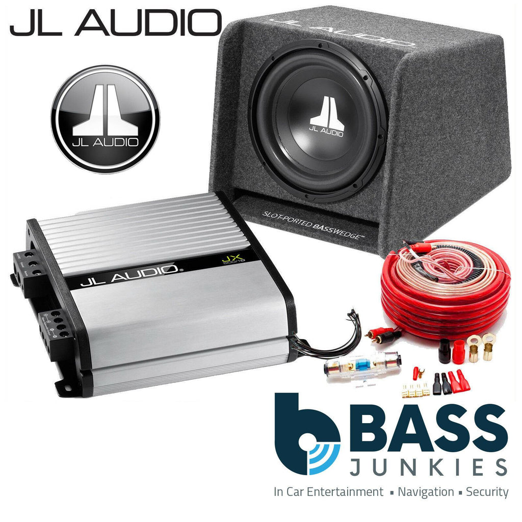 JL Audio CP110-W0V3 - 10 inch 300 Watts Ported Enclosure Subwoofer Bass Box & JL JD500.1 Amplifier with Complete Wiring Kit