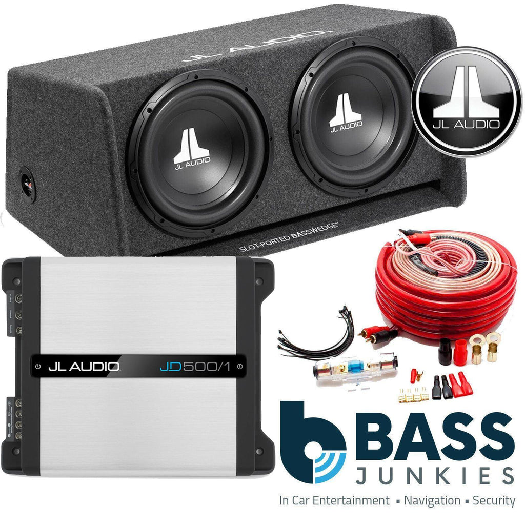 JL Audio CP210-W0V3 - Twin 10 inch 600 Watts Ported Enclosure Subwoofer Bass Box & JL Audio JD500.1 Amplifier with Complete Wiring Kit