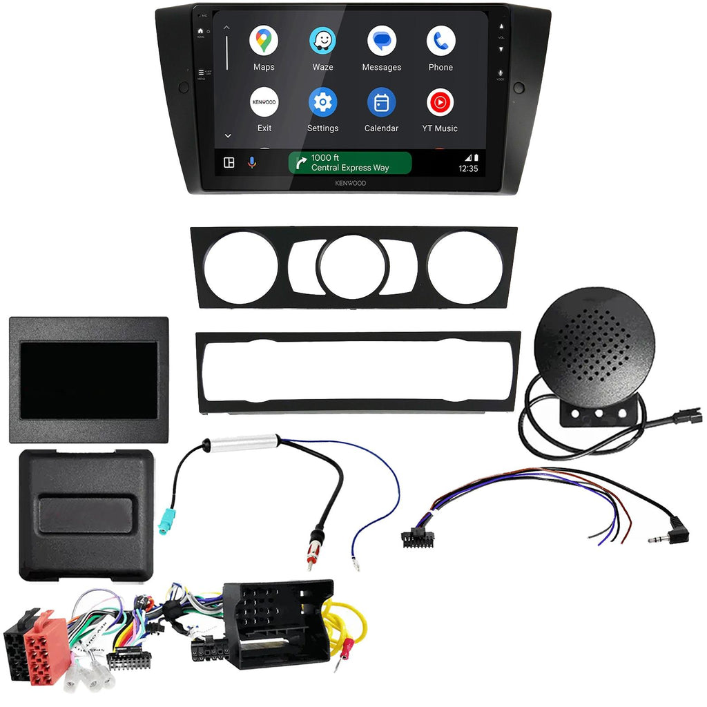 Kenwood 9" CarPlay Android Auto Car Stereo Screen with Complete Steering Wheel Interface & Fascia Panel kit For BMW 3 Series E90 E93 2004 - 2012