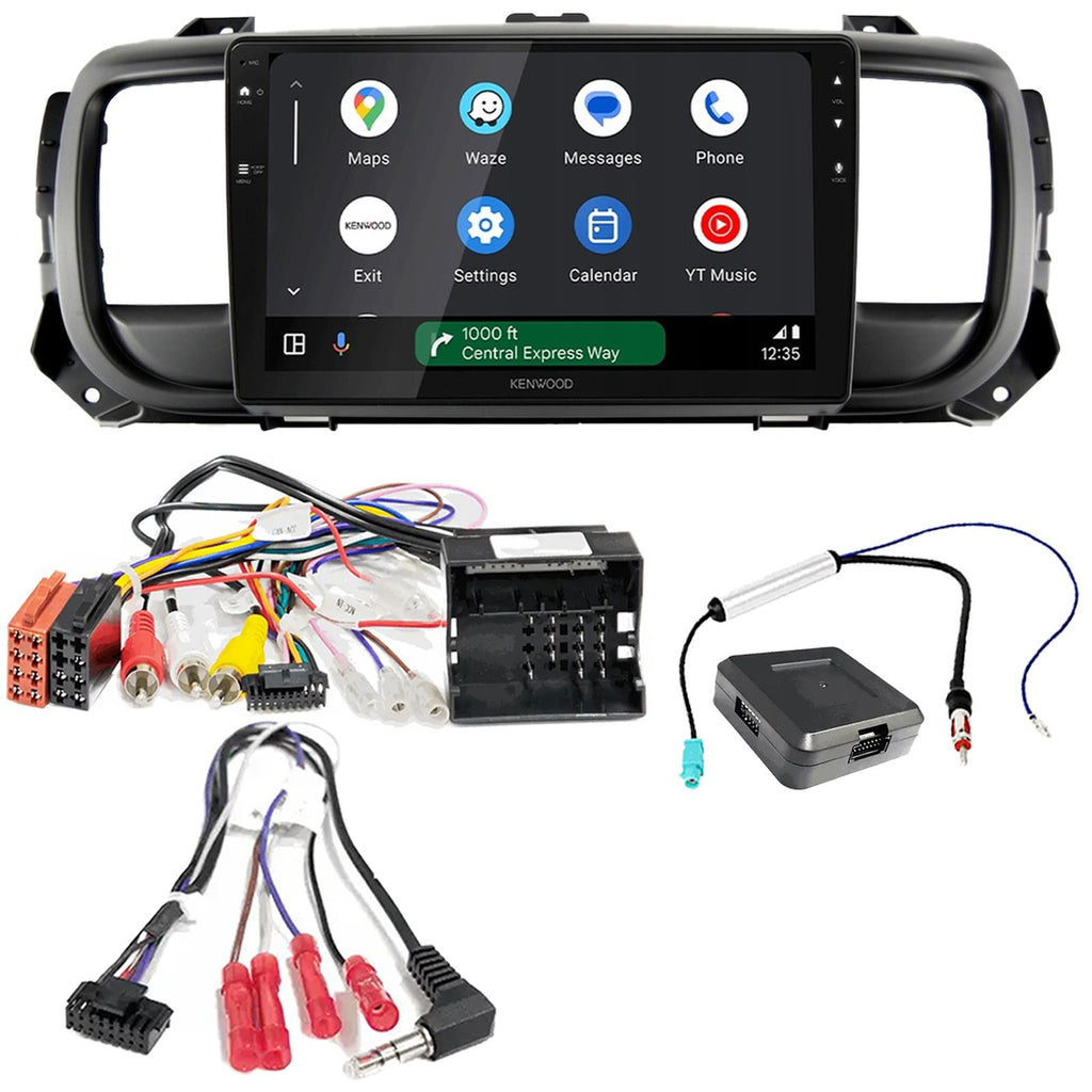 Kenwood 9" CarPlay Android Auto Car Stereo Screen with Complete Steering Wheel Interface & Fascia Panel kit For Citroen C5 Aircross 2017 Onwards