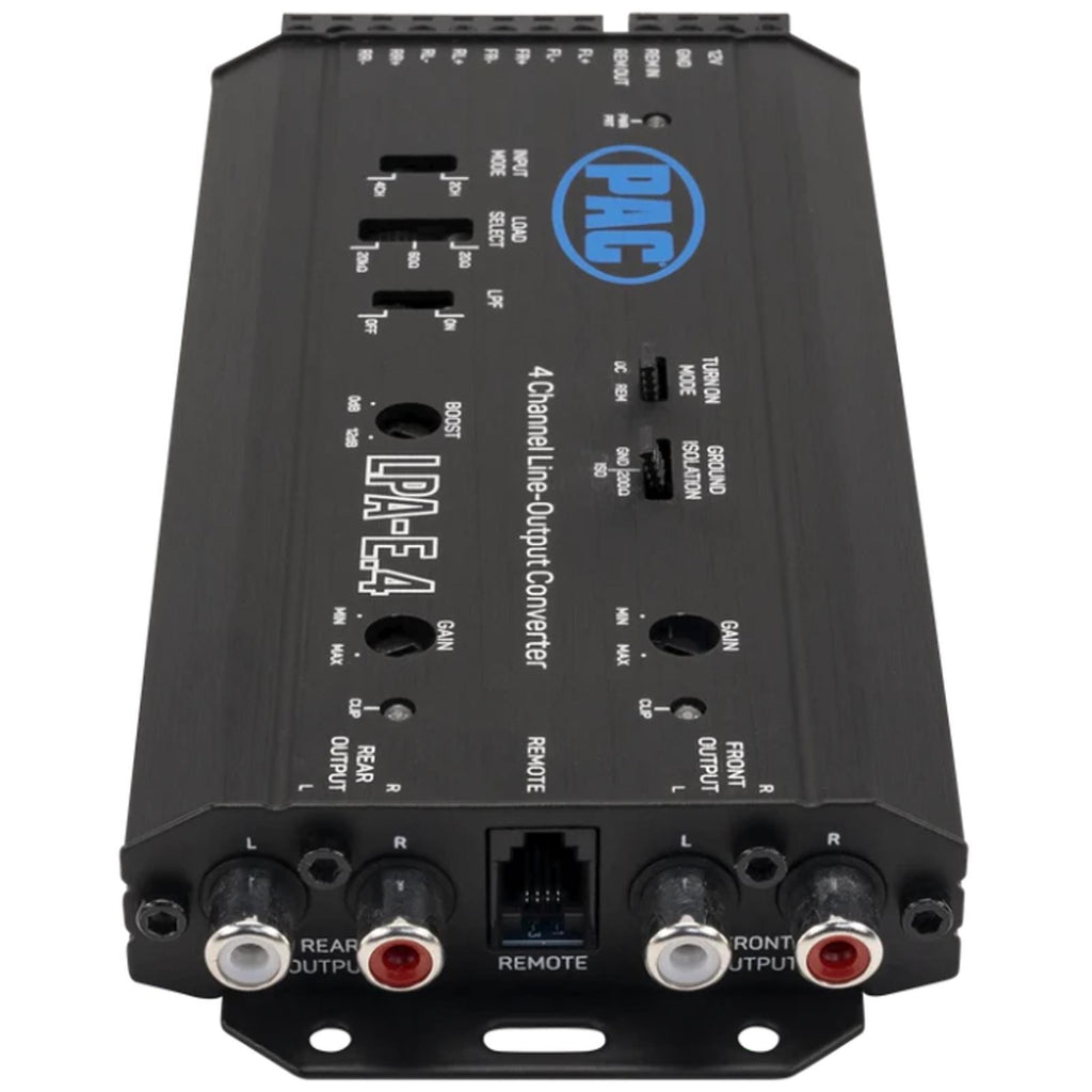 The LPA-E.4 4-Channel Line Output Converter is designed to seamlessly integrate aftermarket amplifiers into factory audio systems. It converts high-level speaker signals into clean RCA outputs while maintaining sound quality and signal stability. Featuring built-in auto turn-on and a remote level controller, this LOC offers a simple, installer-friendly solution for modern OEM upgrades.
