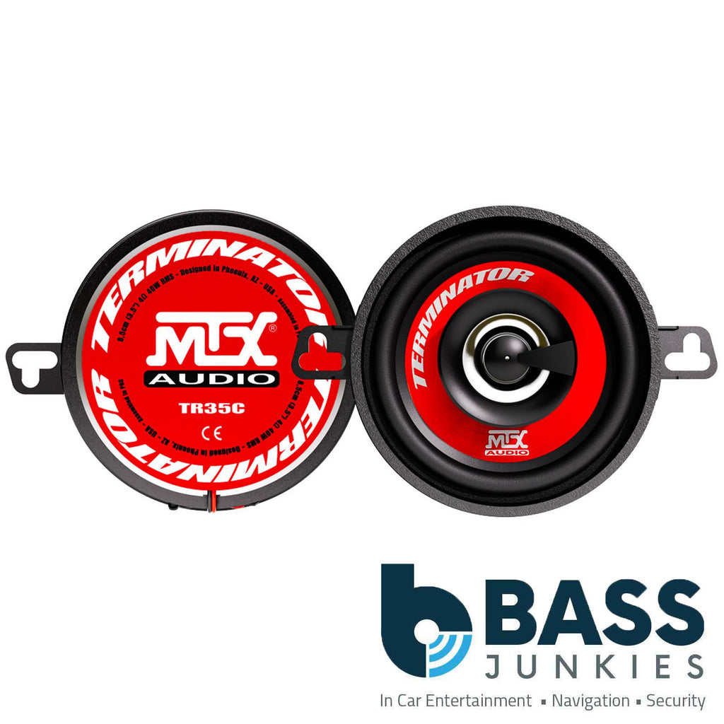 The MTX TR35C 3.5" 2-Way Coaxial Speakers deliver impressive sound quality, strong power handling, and high-quality construction. Built with an electroplated and brushed injected polypropylene cone, these speakers provide accurate and musical sound reproduction. A 13mm Mylar tweeter with phase piece ensures clear high frequencies, while the 25mm aluminium voice coil improves cooling and efficiency during extended listening sessions. Designed with MTX’s original chassis and rubber suspension, the TR35C speakers offer durability and smooth audio performance, making them a solid upgrade for factory-installed speakers.