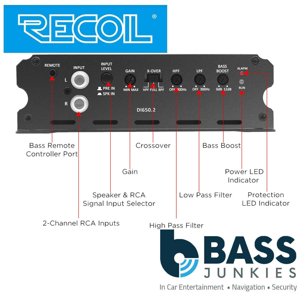 Recoil DI650.2 -1400 Watts 2-Channel 2-4 Ohm Stable Class-D Car Audio Amplifier