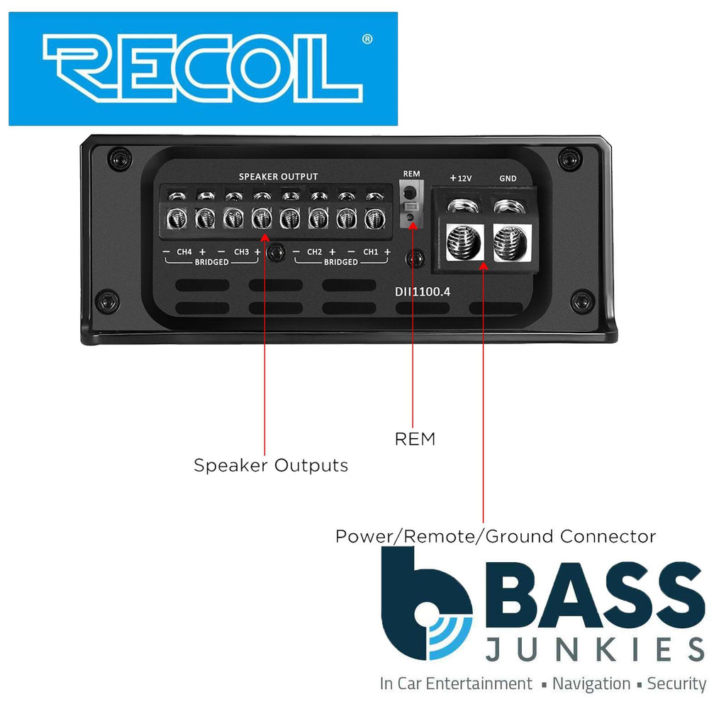 Recoil DII1100.4 - 1100 Watts 2-4 Ohm Stable Class D 4 Channel Car Amp Amplifier