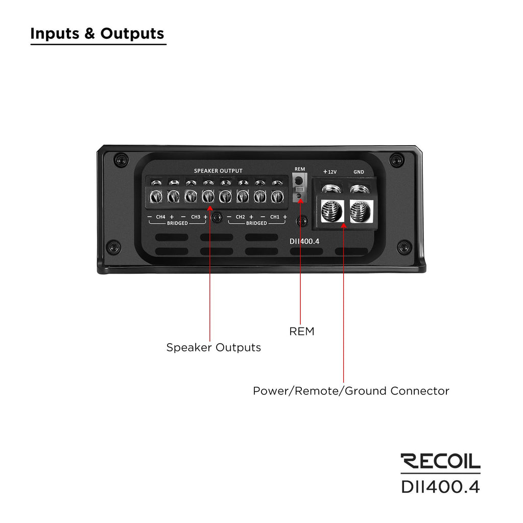 Recoil DII400.4 - 800 Watts 4-Channel 2-4 Ohm Stable Class-D Car Amp Amplifier