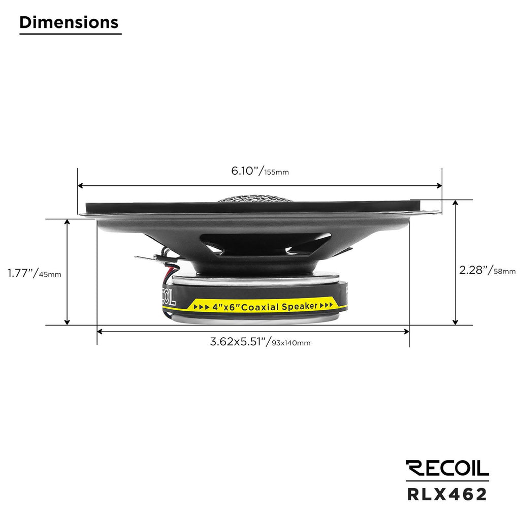 Recoil RLX462 - 100 Watts 4x6" Inch 2 Way Coaxial Car Door Speakers Pair