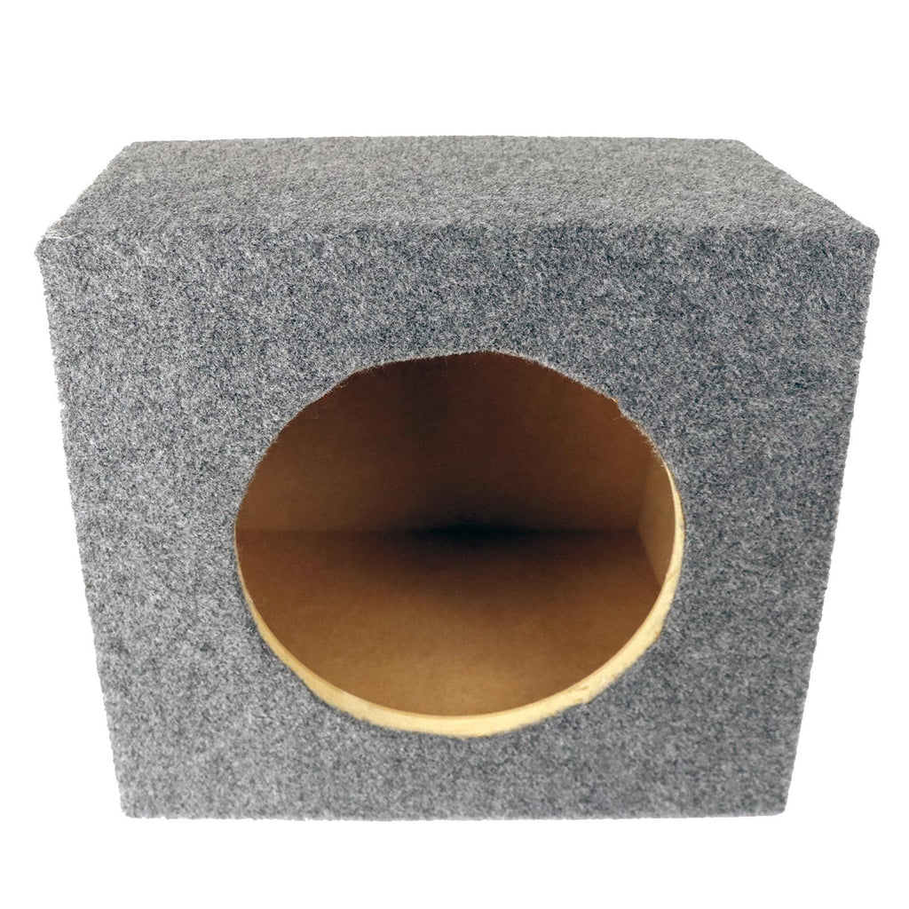 The Recoil 10" inch Sealed Single Subwoofer Enclosure is carpeted with a Grey trunkliner that offers a subtle appearance with enhanced durability.