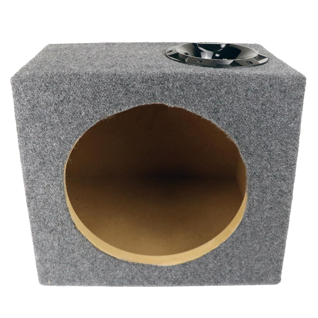 The Recoil 12" inch Ported Single Subwoofer Enclosure is carpeted with a Grey trunkliner that offers a subtle appearance with enhanced durability.