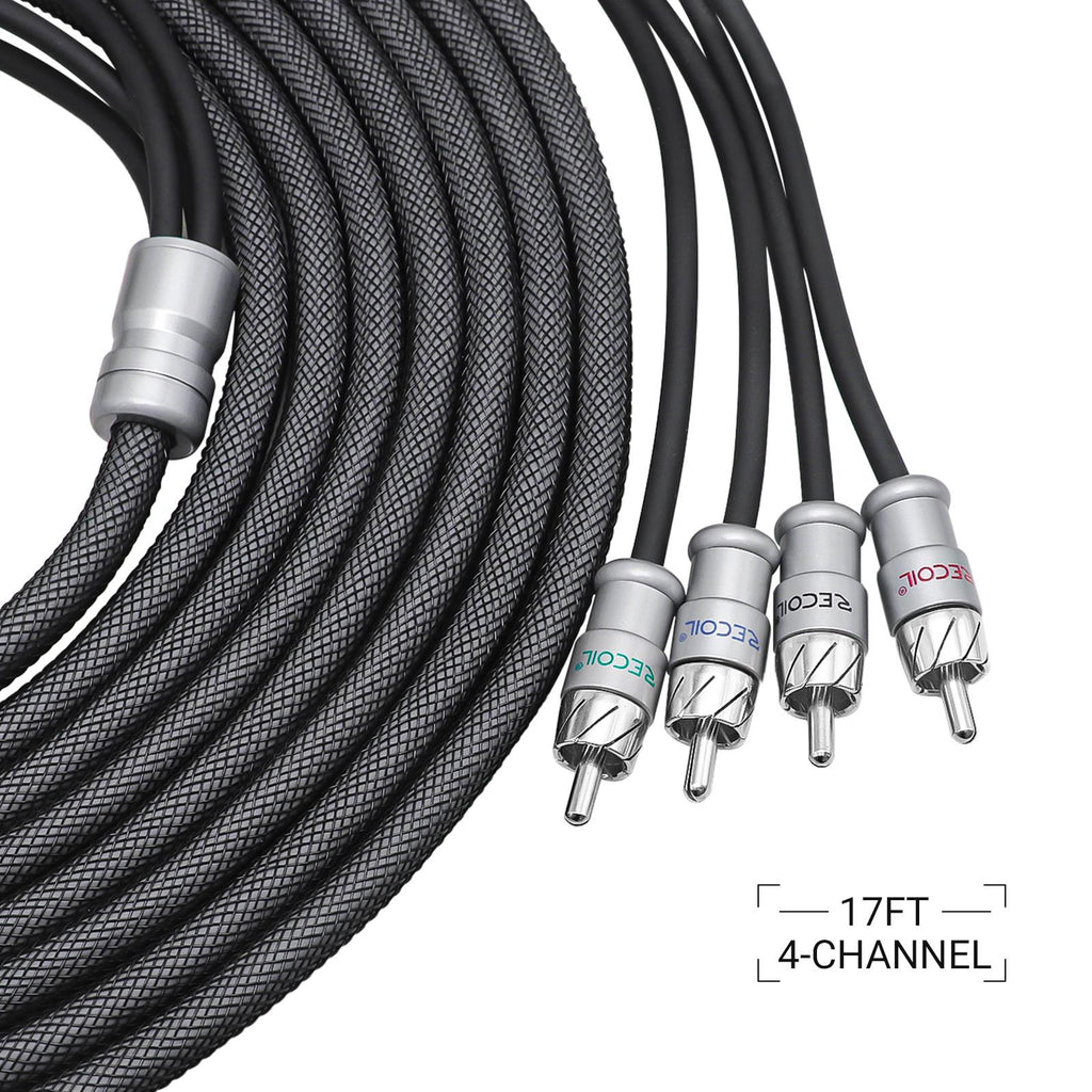 Premium 4-Channel RCA Interconnect Cable, Length 17ft, Providing Crystal Clear Stereo Sound for Your Amplifier