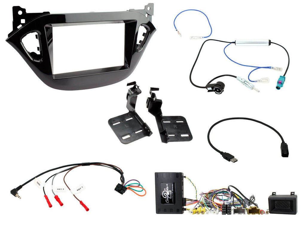 Connects2 Full Fitting Kit for Vauxhall Corsa 2014-2019. Double din installation kit for the Vauxhall Corsa. Supplied with double din fascia (Piano Black), infodapter, antenna adaptor and universal patchlead for a complete installation solution. The infodapter interface allows the retention of SWC, Optical parking sensor display and climate control retention when fitting an aftermarket AV headunit.