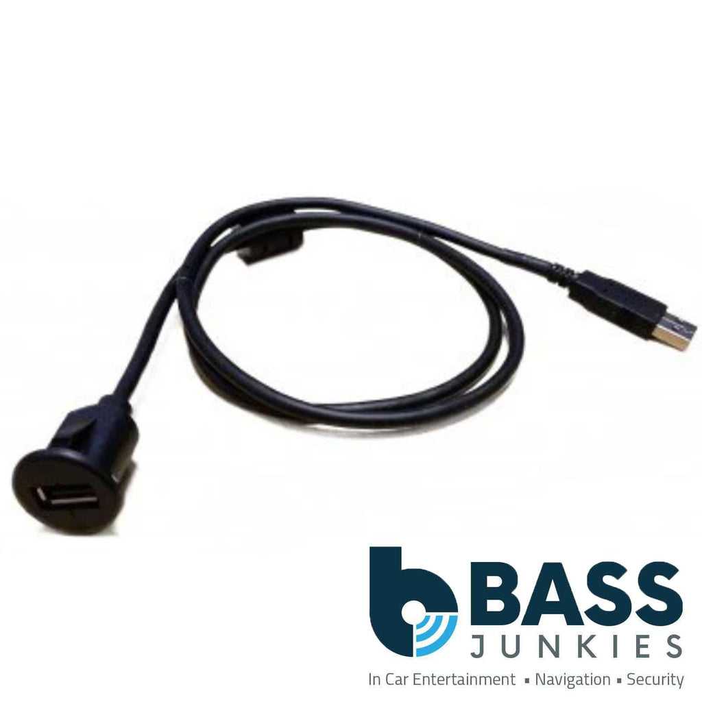 Cable connects to a USB port and provides a 3' extension. The female end of the cable features a flush mountable design. You can simply drill a 3/4” hole at the desired mounting location and snap the end of the cable in for an OEM look. The USBDMA3 also features a mounting bracket that can be used to mount the USB connector without drilling holes in the vehicle. Snap the cable into the bracket and mount it wherever your installation demands.