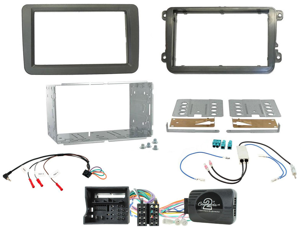 Fitting Kit Information:Volkswagen installation kit. This kit comes supplied with a black double DIN fascia panel with included accessories, a CAN-Bus steering wheel control interface, a twin Fakra to DIN antenna adapter & a universal patchlead. Note: for vehicles with MIB-PQ platform.