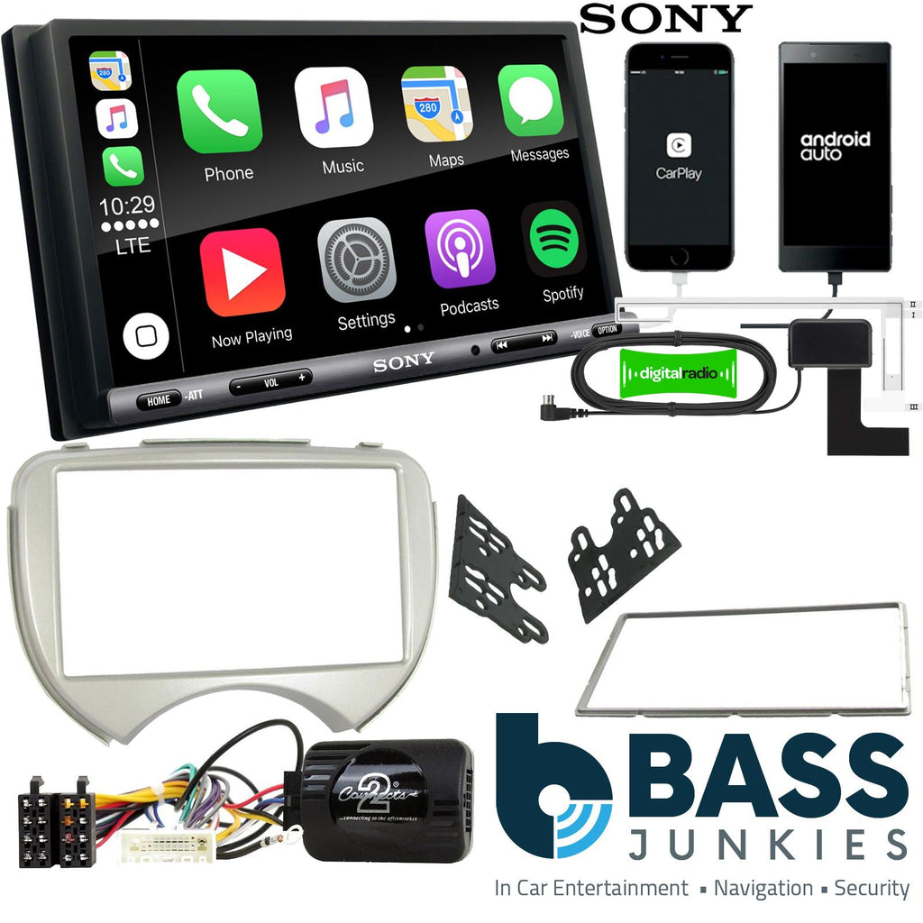 Sony XAV-AX3250 Car Stereo (17.6cm) 6.95" Touch Screen Double Din Bluetooth | USB | DAB+ Radio | FM Radio | Apple CarPlay | Android Auto | Rear�view camera ready | Anti-Glare Screen + Nissan Micra Installation Kit. Supplied With Silver Double DIN Fascia, Resistive Steering Wheel Control Interface & Universal Patchlead