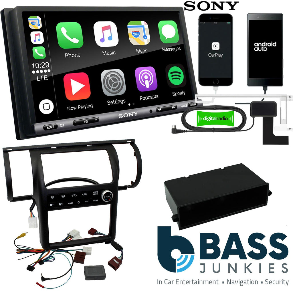Infiniti double din Professional Installation Kit, finished in charcoal to match the OEM dash colour, for Dual zone climate control systems, complete with SWC interface for Kenwood, Alpine, Pioneer, Sony, JVC, units and integrated HVAC control.