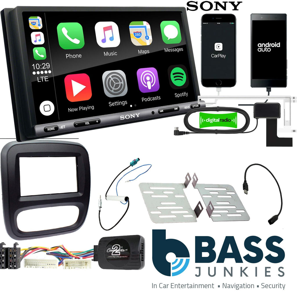 Sony XAV-AX3250 Car Stereo (17.6cm) 6.95" Touch Screen Double Din Bluetooth | USB | DAB+ Radio | FM Radio | Apple CarPlay | Android Auto | Rear�view camera ready | Anti-Glare Screen + Vauxhall Vivaro Double Din Fitting Kit. Supplied With Black Double DIN Fascia, Steering Wheel Control Interface, FAKRA Antenna Adapter & Universal Patchlead