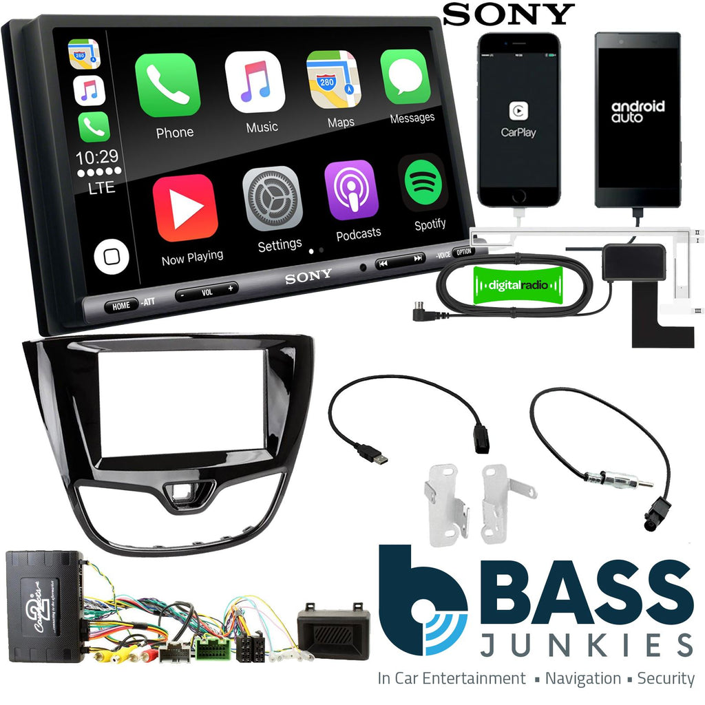 Sony XAV-AX3250 Car Stereo (17.6cm) 6.95" Touch Screen Double Din Bluetooth | USB | DAB+ Radio | FM Radio | Apple CarPlay | Android Auto | Rear�view camera ready | Anti-Glare Screen + Vauxhall Viva/Opel Karl installation Kit. Supplied With Infodapter, Piano Black Double DIN Fascia, FAKRA Antenna Adapter, USB and AUX Retention & Universal Patchlead **Max Depth Of Aftermarket Headunit 120mm**